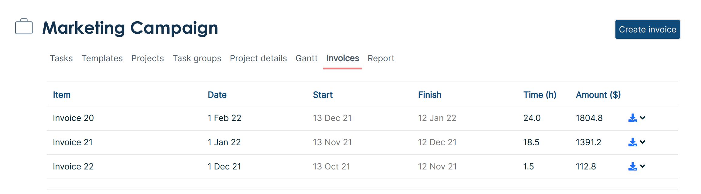Build and export invoices for your projects from fflow.