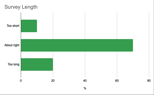 We also asked you about the length of the survey. It looks like - for those who were still reading - we got it about right.